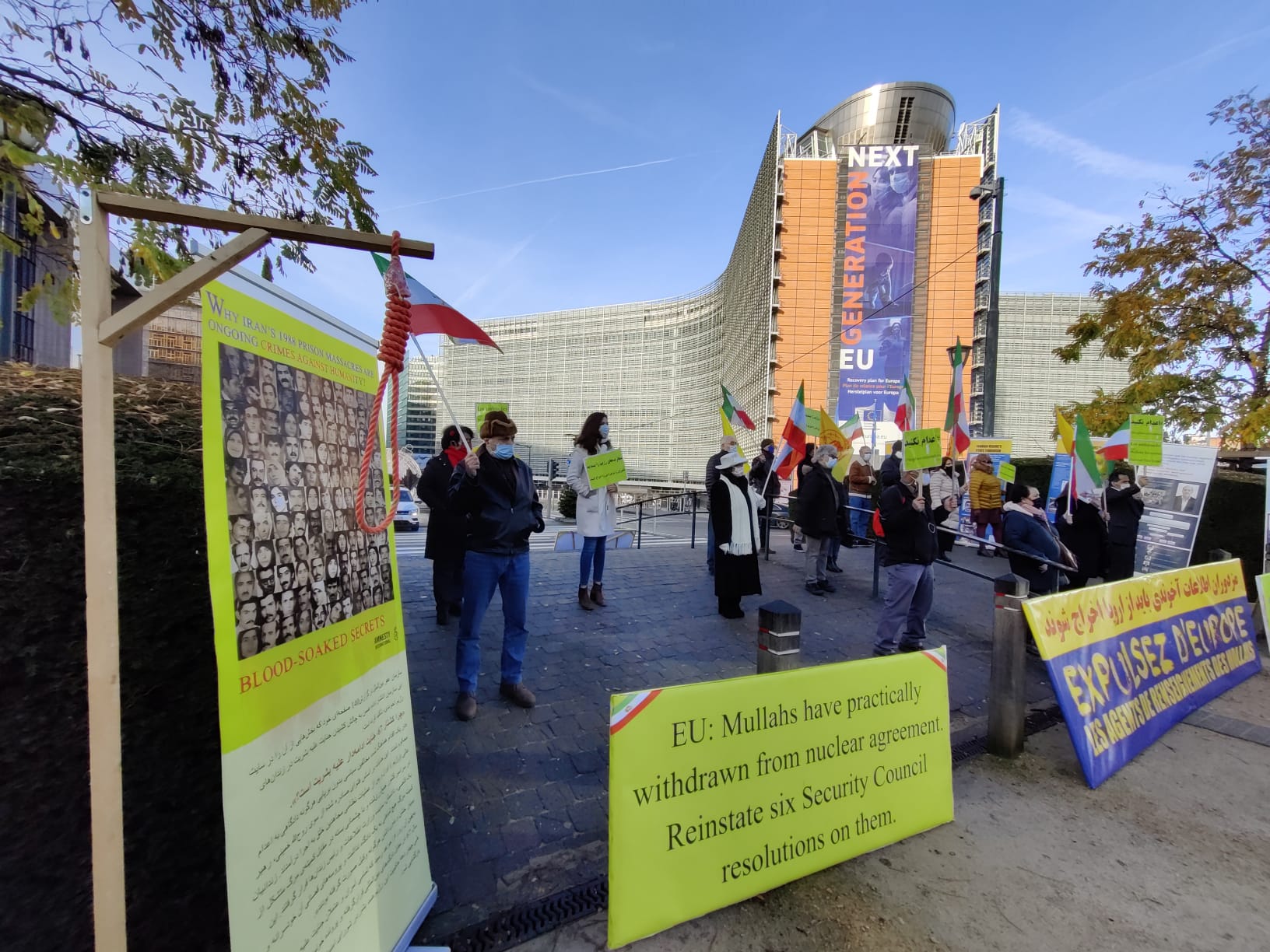 Protesters urged the EU to stop appeasing the mullahs’ regime and hold the clerical regime to account for its domestic human rights violations and export of terrorism abroad.